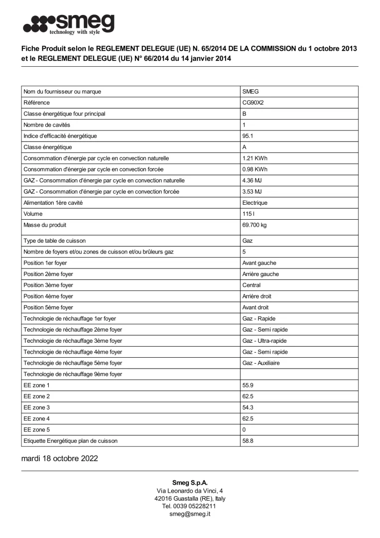 Piano de cuisson dessus gaz SMEG GAMME ELITE BG91X2