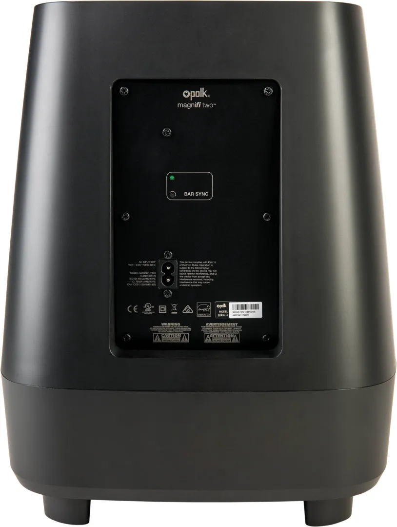 Caisson de basse sans fil, Télécommande avec piles, Câbles d’alimentation, Câble HDMI, 2 supports muraux en forme de L |