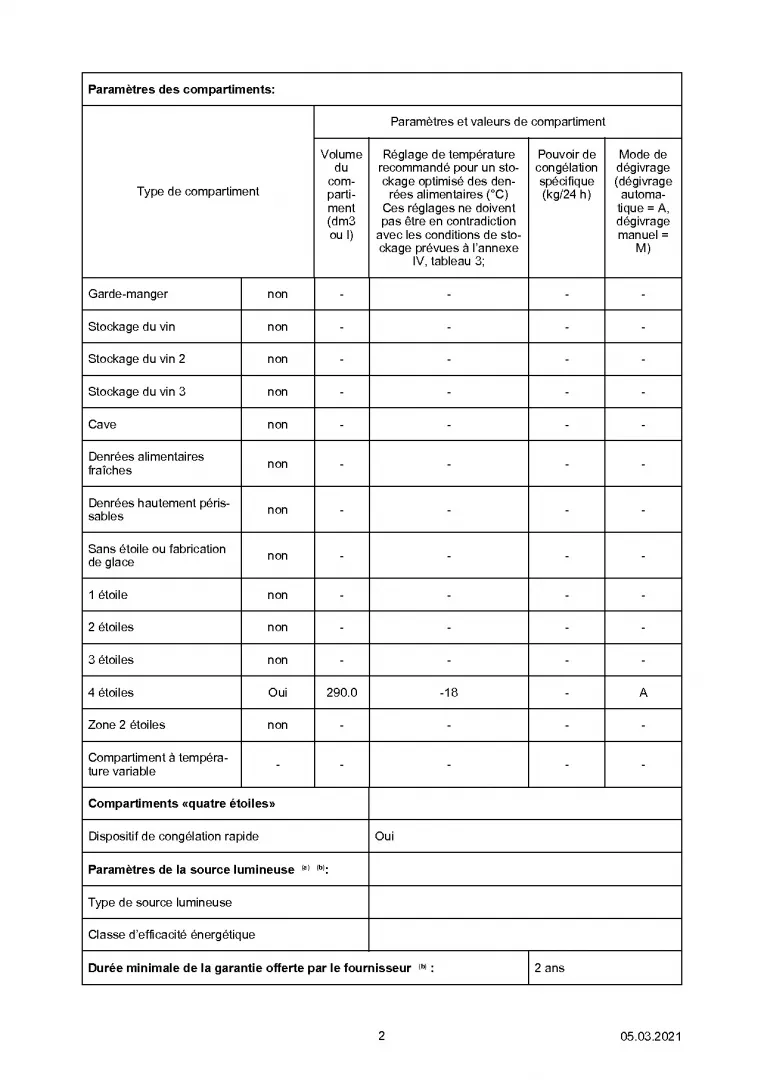 | T°C recommandée pour stockage optimisé des denrées alimentaires dans compartiment 4 étoiles (°C) |